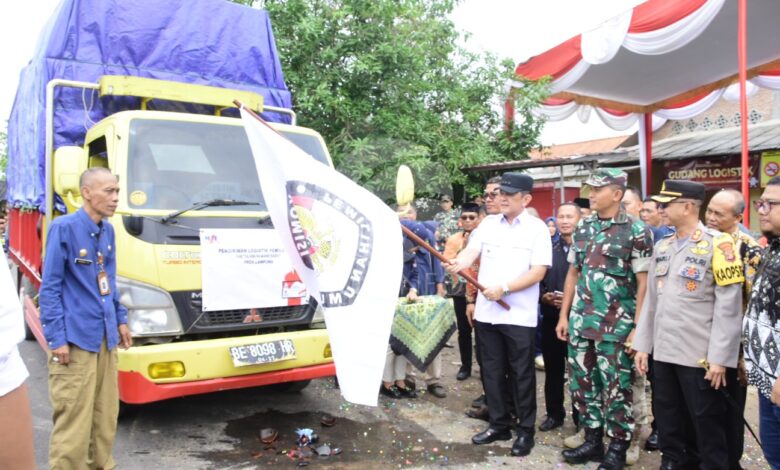 Revolusinusantara.com Tubaba-Penjabat Bupati Tulangbawang Barat Drs. M. Firsada, M.Si. resmi melepas Pendistribusian Logistik Pemilihan Umum Tahun 2024 di Gudang Logistik KPU Tubaba, Tiyuh/Desa Candra Mukti, Kecamatan Tulangbawang Tengah. Sabtu (10/02/2024).