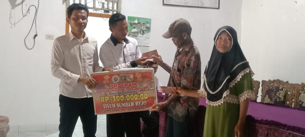 Bantuan BLT tersebut yang di ambil dari anggaran Dana Desa tahun 2024 tahap pertama, sebanyak 22 kepala keluarga peneriman manfaat (KPM) terealisakan oleh pemerintah kampung (Tiyuh) sumber Rejo Jum’at 22-03-2024.