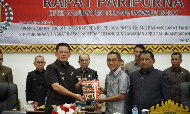 Revolusinusantara.com | TUBABA – Penjabat Bupati Tubaba Drs. M. Firsada.,M.Si, Menyampaikan Rencana Pembangunan Jangka Panjang Daerah (RPJPD) pada Pembicaraan Tingkat I Atas RPJPD Kabupaten Tubaba Tahun 2025-2045 dan Pembicaraan Tingkat II Atas Raperda Pertanggungjawaban APBD Tahun Anggaran 2023, dihadapan Rapat Paripurna DPRD Tubaba, Selasa (02/07/2024). Dalam penyampaiannya M. Firsada mengatakan untuk mewujudkan Visi Kabupaten Tubaba 2045 Tulang Bawang Barat Maju, Sejahtera…